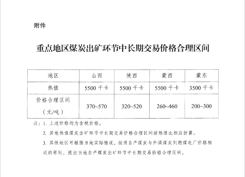 从多年市场运行情况看,近期阶段秦皇岛港下水煤(5500千卡)中长期交易价格每吨570~770元(含税)较为合理(晋陕蒙相应煤炭出矿环节中长期交易价格合理区间见附件),煤炭生产、流通、消费能够保持基本平稳,煤、电上下游产业能够实现较好协同发展。适时对合理区间进行评估完善。