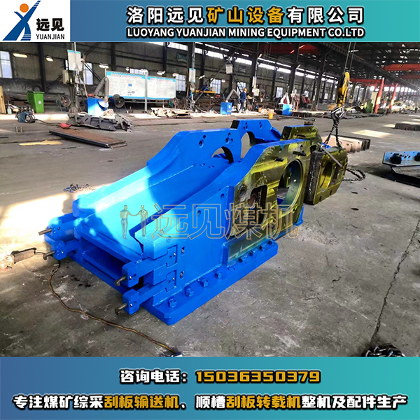 在机头架上固定的一些常见的零部件有:舌板、拨链器、舌板组件、链轮组件、压链器、电机、减速器、闸盘、对轮、连接罩等配件。